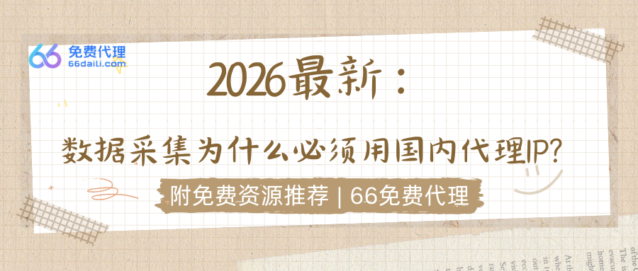 2026最新:数据采集为什么必须用国内代理IP?附免费资源推荐2026 年数据采集必看!拆解数据采集用国内代理 IP 原因,告诉你为啥非得选国内代理 IP,附新手首选免费国内代理 IP——66 免费代理,新手练手、小型采集直接抄作业,不用瞎找乱试! -